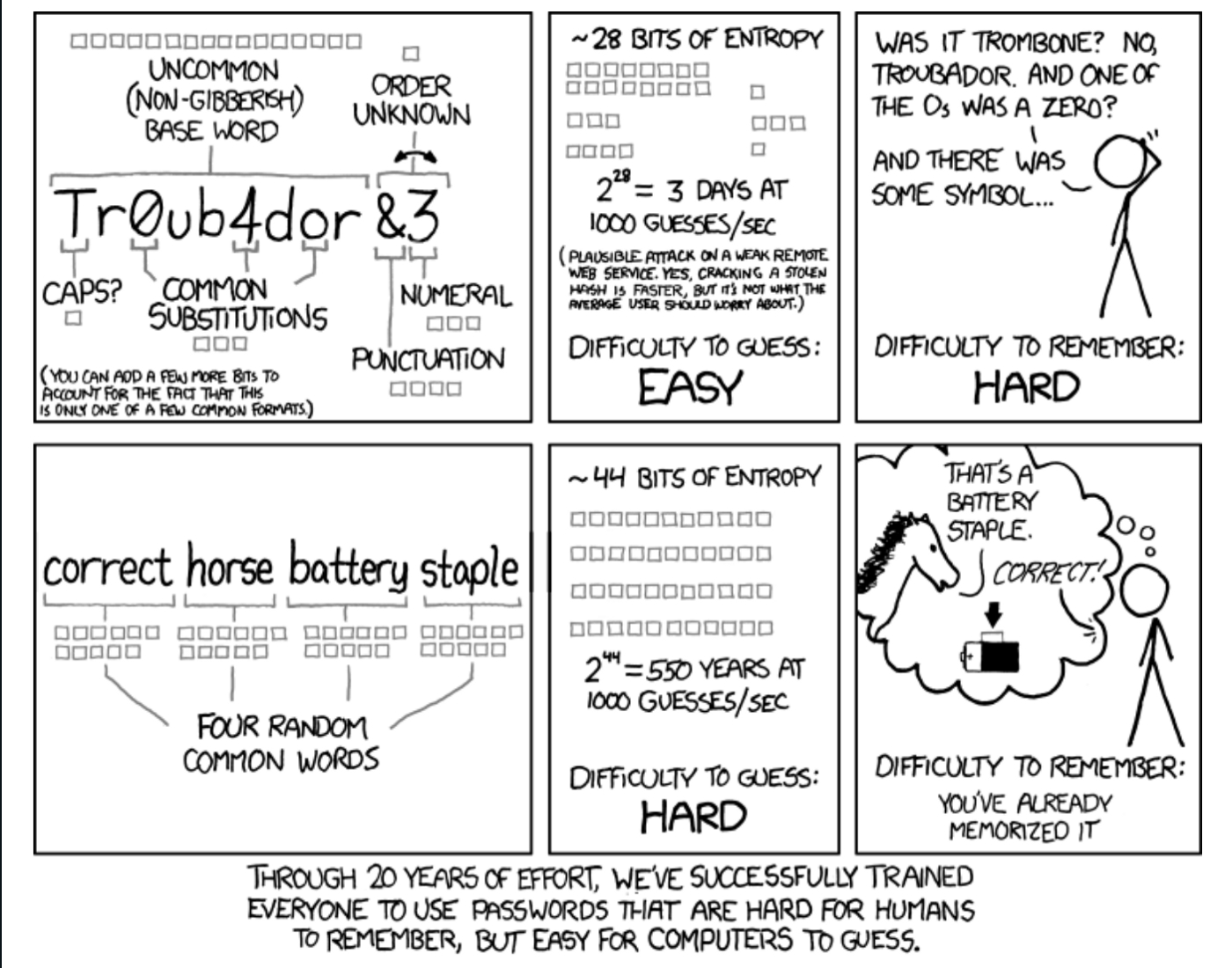 YouTube, How to Choose a Password -- Computerphile https://www.youtube.com/watch?v=3NjQ9b3pgIg [Invidious] ↩︎